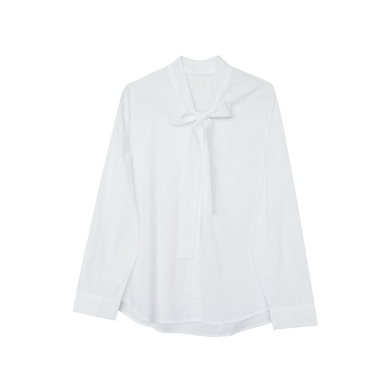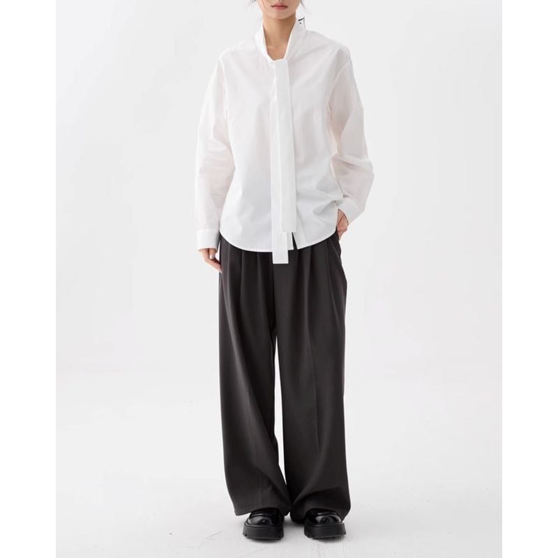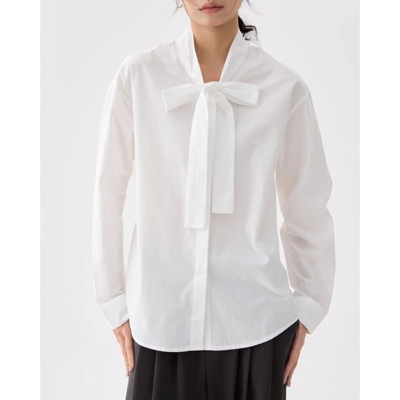 ボウタイデザインがポイントのシンプルで使いやすいブラウス。