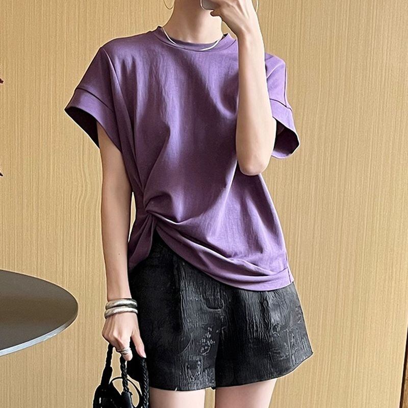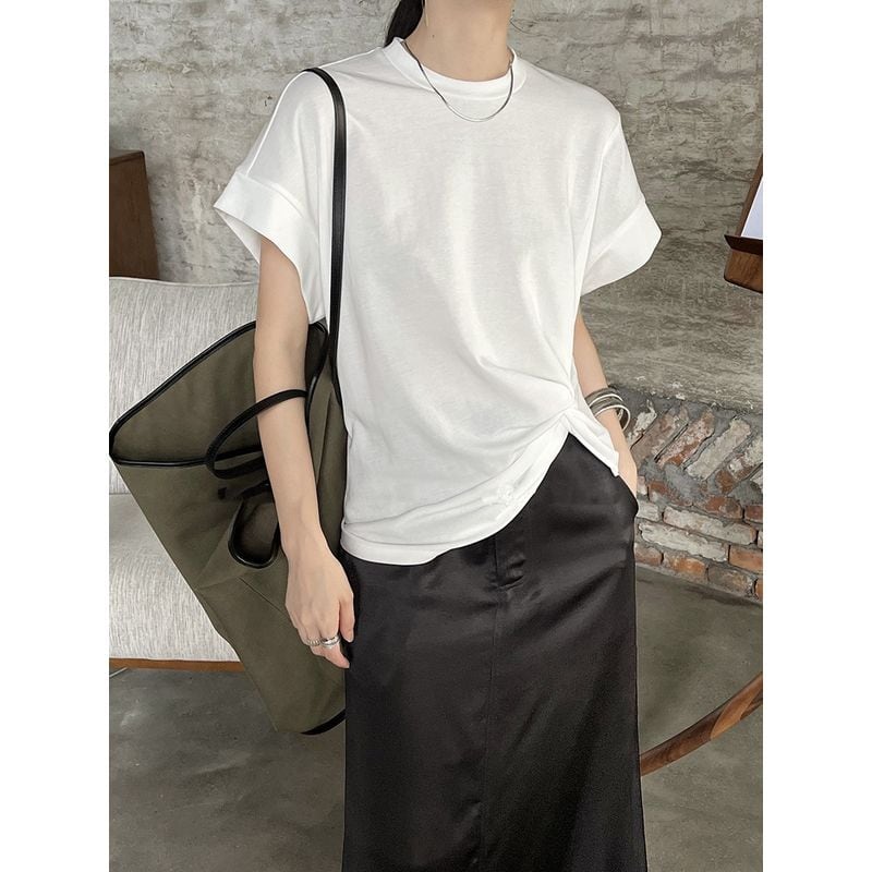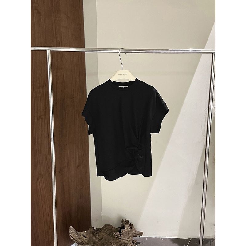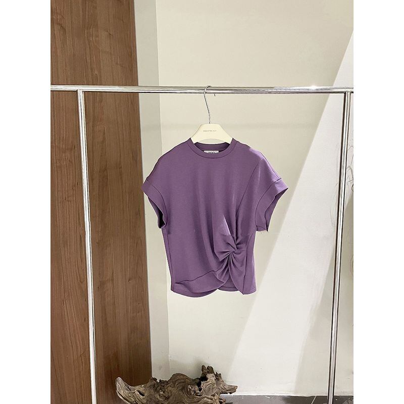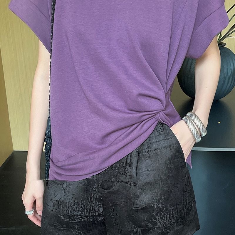 サイドのシャーリングデザインが特徴的なTシャツ。
