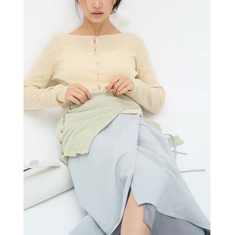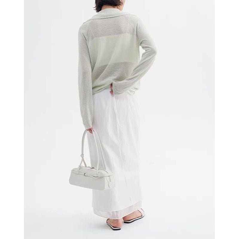 透け感が着こなしを涼し気な印象にし、ロング丈で、気になるシルエットも綺麗にみせてくれる1着です。