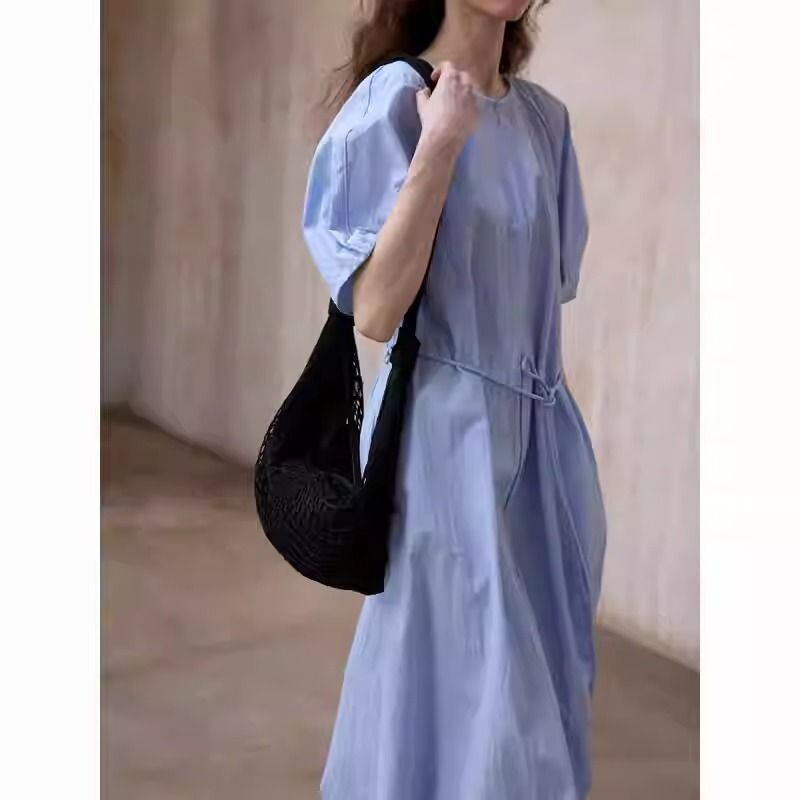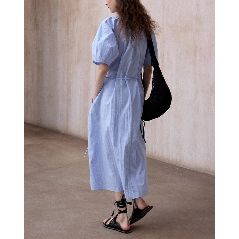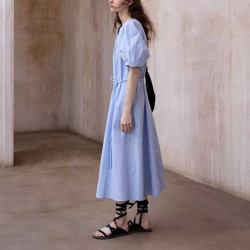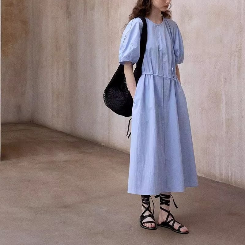 ランタンスリーブがアクセントを与えてくれる、シンプルで使いやすいロングワンピース。