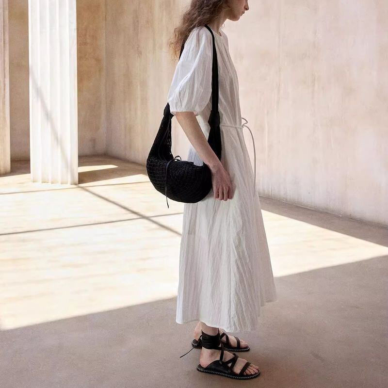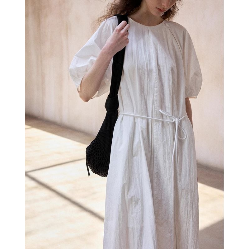 ハリ感のある素材で、ふわっとしたシルエットを作り、夏らしい印象に。