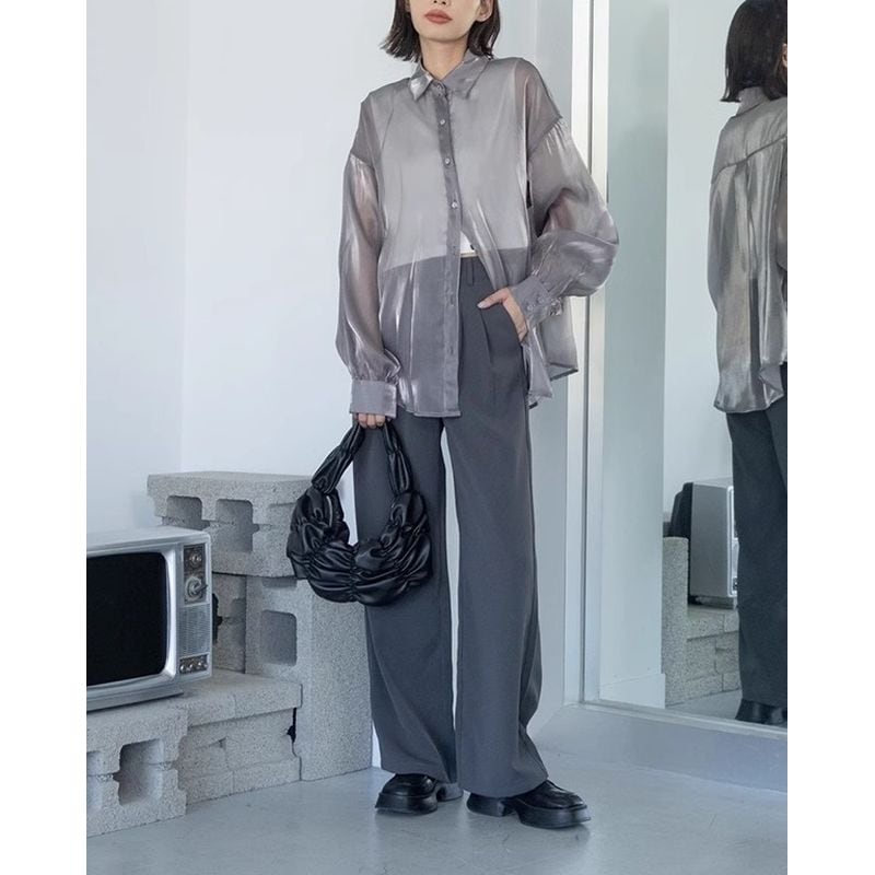 光沢感のあるシアー素材を使った、涼し気で品のある印象を与えてくれるシャツ。