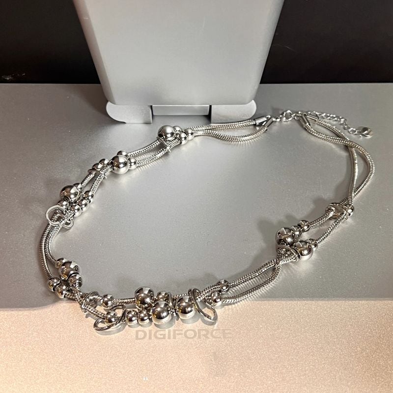 カジュアルながらも品の良さも与えてくれる、メタルビーズのネックレス。