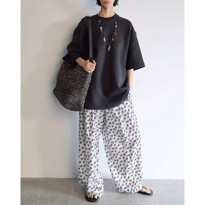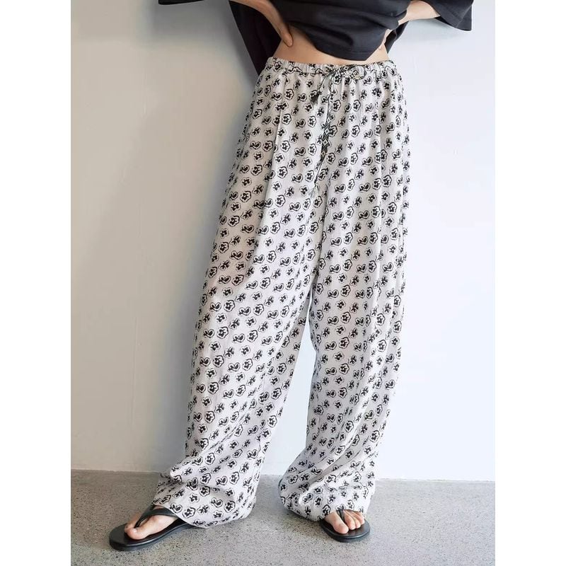 手書きのようなフラワーデザインで、コーディネートの主役になってくれるイージーパンツ。