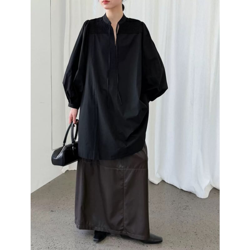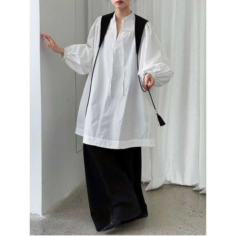 フロントのリボンと、スモックチュニックの雰囲気が女性らしさを作ってくれるブラウス。 ふんわりとしたシルエットで、体型カバーも◎ 細身のボトムスと合わせて、バランスよくまとめるのもおすすめです。 - size - M〔 肩幅 32cm / 胸囲 124cm / 着丈 93cm / 袖丈 61cm 〕 L〔 肩幅 34cm / 胸囲 128cm / 着丈 94cm / 袖丈 62cm 〕 ※ インポート商品のため1〜3cm程度誤差のある場合がございます。 model:身長163cm、size F着用 - color - white black - material - コットン □ お届けについて こちらの商品は海外店舗より直接発送となるため ご注文または決済後 2〜4週間 前後で発送致します。 □ 注意事項 ・タイミングによっては 商品在庫切れにより 注文キャンセルとさせていただく恐れも ございますので 予めご了承くださいませ。 ・インポート商品のため新品未使用品でも ごくわずかな汚れやほつれがある場合もございます。 ・商品の色味は、お手持ちのスマートフォンやPCの 画面によって 実物と若干異なる場合がございます。 ・イメージ違いやサイズ交換等、お客さまご都合による 交換、返品は対応出来かねます。 最後まで心を込めて対応させていただきますので 安心してお買い物をお楽しみください◎ _____________________ □ ご購入前に必ずこちらをお読みください↓ https://www.toujouage.com/blog/2022/10/11/050436 □ 新作やその他の商品はこちらから↓ https://www.toujouage.com _____________________