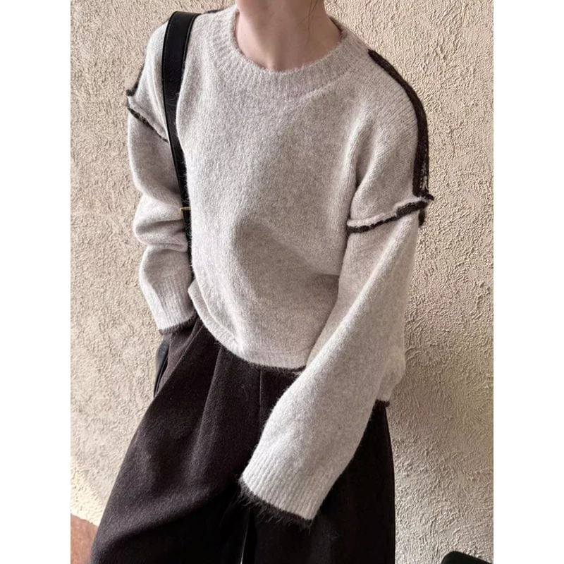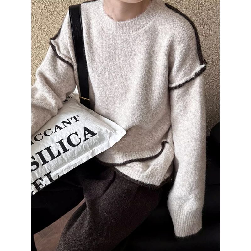 ステッチのカラーを変えたツートーンと、裾のクロスデザインが特徴的なニットプルオーバー 。 ドロップショルダーでゆるっとした、トレンド感のある着こなしに◎ パンツスタイルもスカートスタイルもマッチしてくれるアイテムで、この冬大活躍間違いなしです。 - size - F〔 肩幅 56cm / 胸囲 110cm / 着丈 57cm / 袖丈 52cm 〕 ※ インポート商品のため1〜3cm程度誤差のある場合がございます。 model:身長168cm、size F着用 - color - gray dark brown light gray light beige - material - ポリエステル アクリル ナイロン ウール スパンデックス □ お届けについて こちらの商品は海外店舗より直接発送となるため ご注文または決済後 2〜4週間 前後で発送致します。 □ 注意事項 ・タイミングによっては 商品在庫切れにより 注文キャンセルとさせていただく恐れも ございますので 予めご了承くださいませ。 ・インポート商品のため新品未使用品でも ごくわずかな汚れやほつれがある場合もございます。 ・商品の色味は、お手持ちのスマートフォンやPCの 画面によって 実物と若干異なる場合がございます。 ・イメージ違いやサイズ交換等、お客さまご都合による 交換、返品は対応出来かねます。 最後まで心を込めて対応させていただきますので 安心してお買い物をお楽しみください◎ _____________________ □ ご購入前に必ずこちらをお読みください↓ https://www.toujouage.com/blog/2022/10/11/050436 □ 新作やその他の商品はこちらから↓ https://www.toujouage.com _____________________