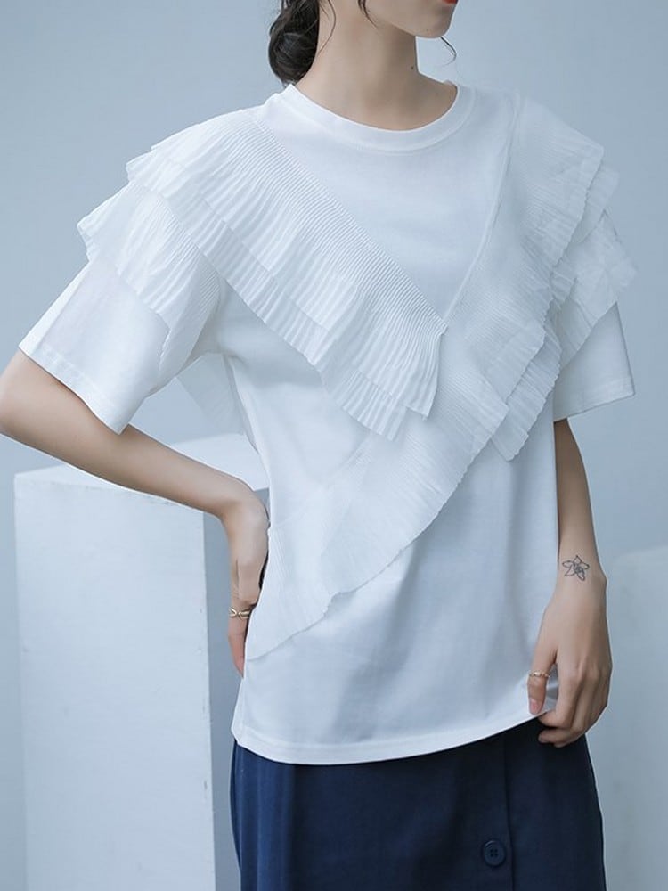 シンプルなボトムスに合わせたいプリーツフリルのTシャツ。