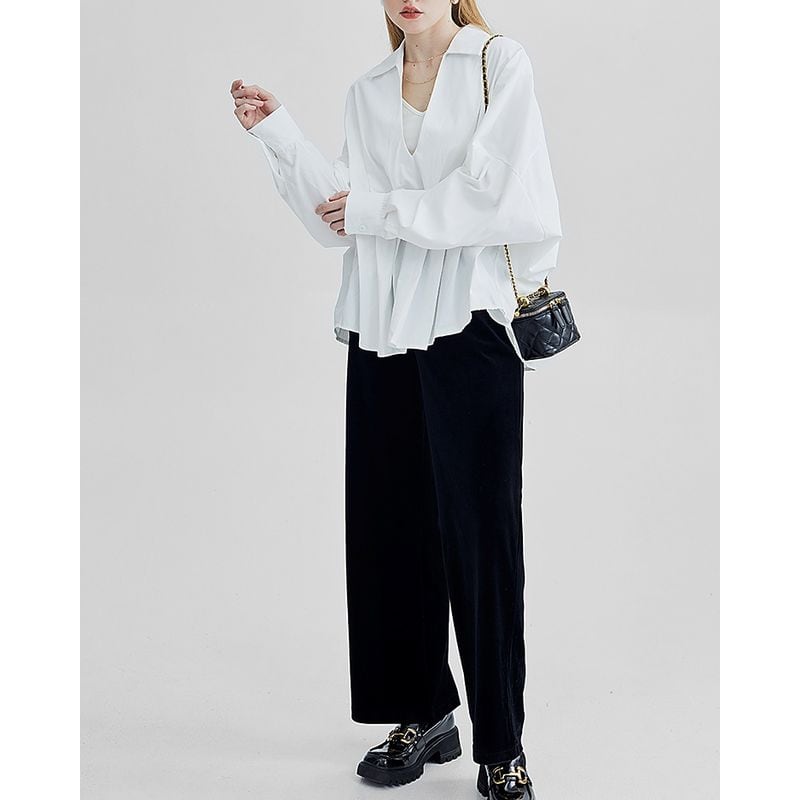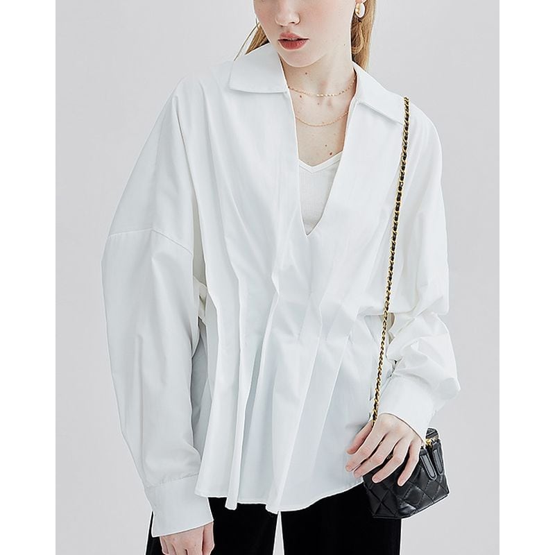Vネックのスキッパースタイルは、すっきりした印象に。