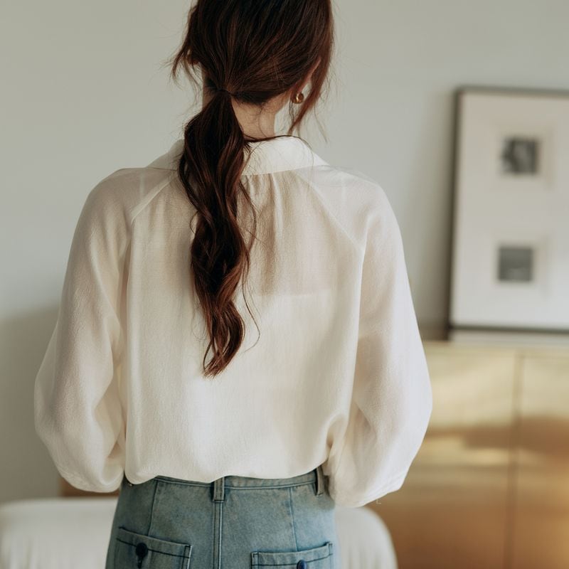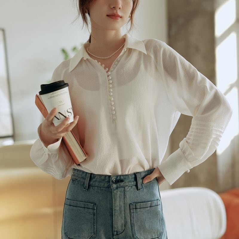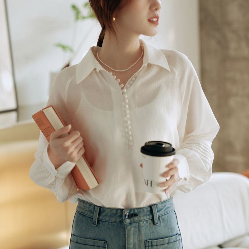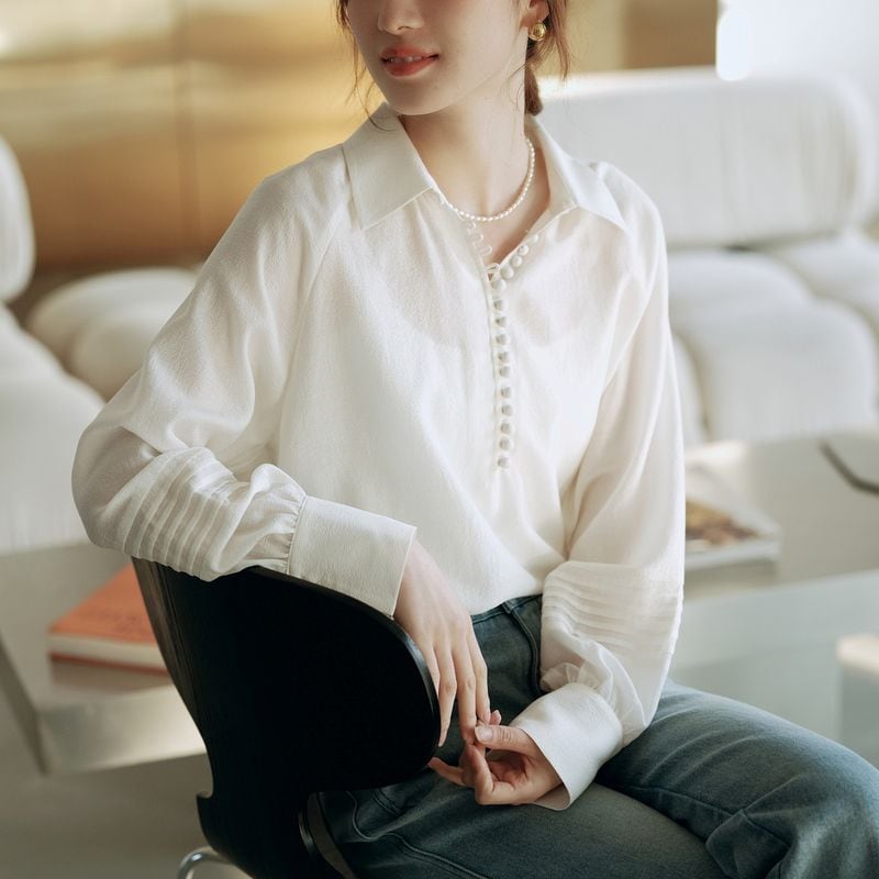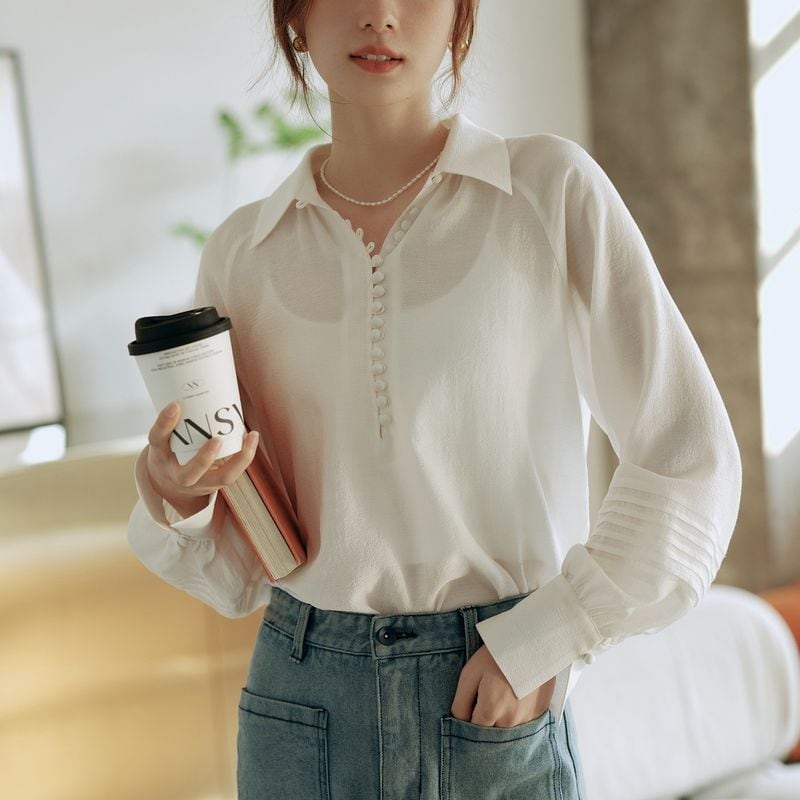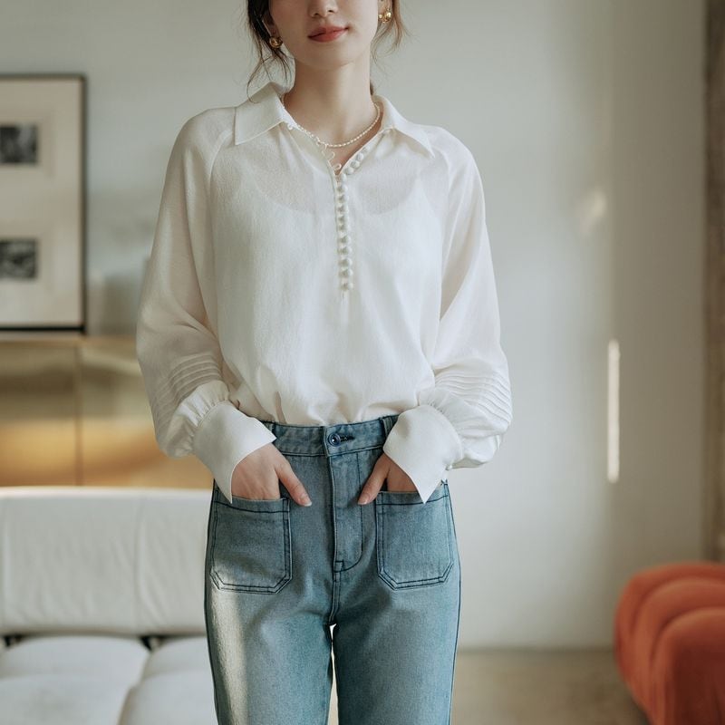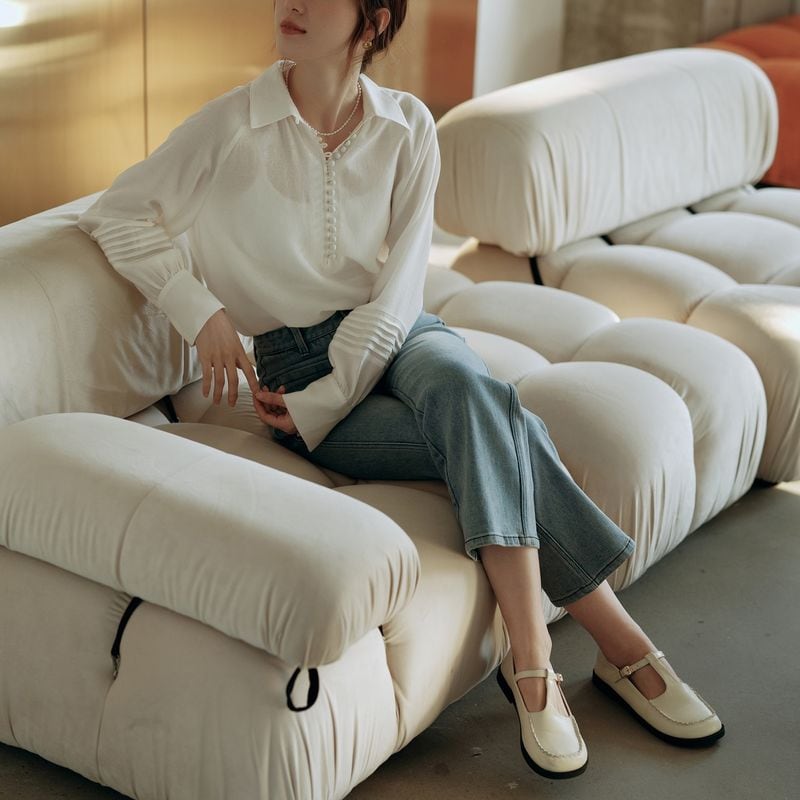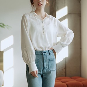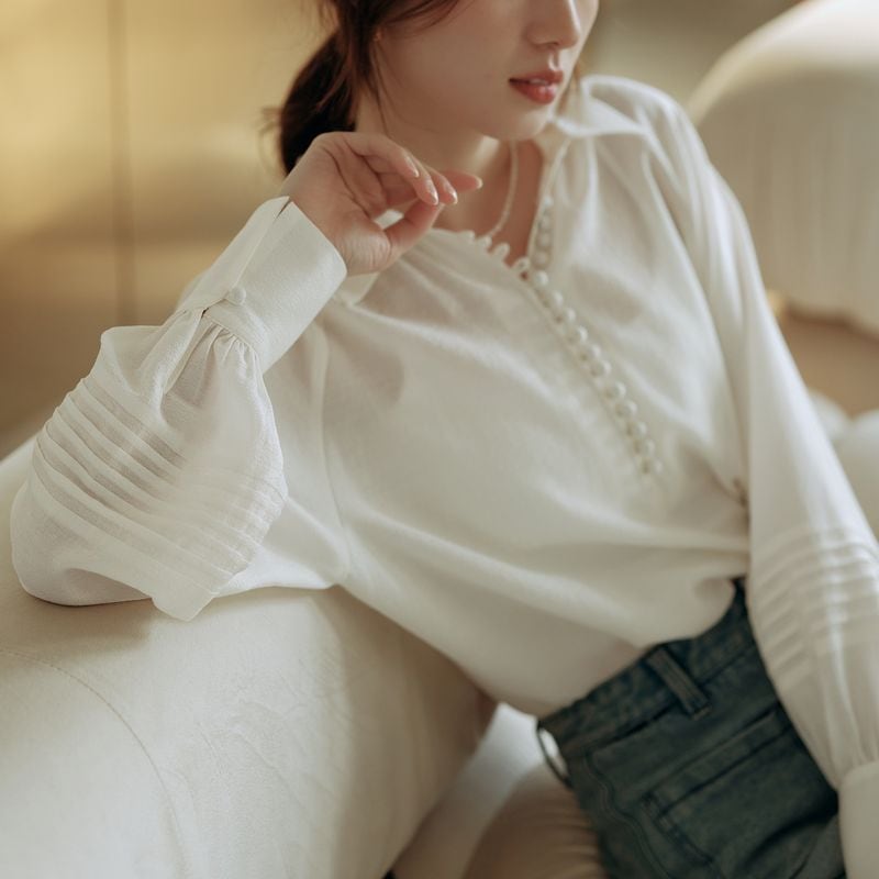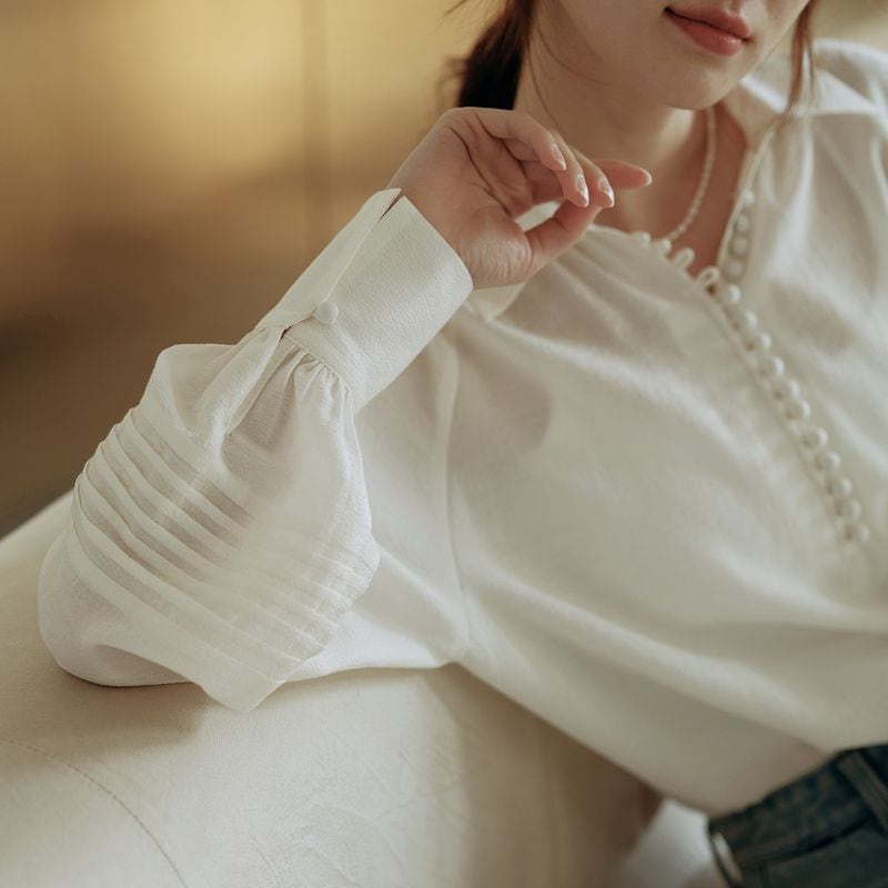 ライン上に細かく施されたボタンと程よくボリュームのあるスリーブが、品の良さを与えてくれます。