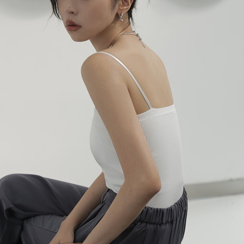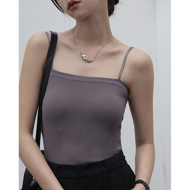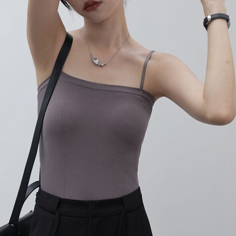 トップスを選ばず、どんなデザインのものとも好相性のベアトップキャミソール。