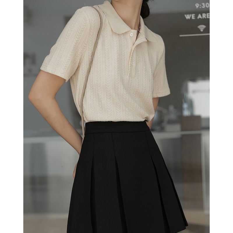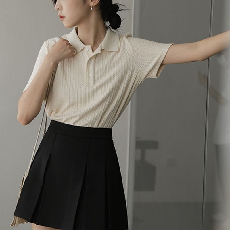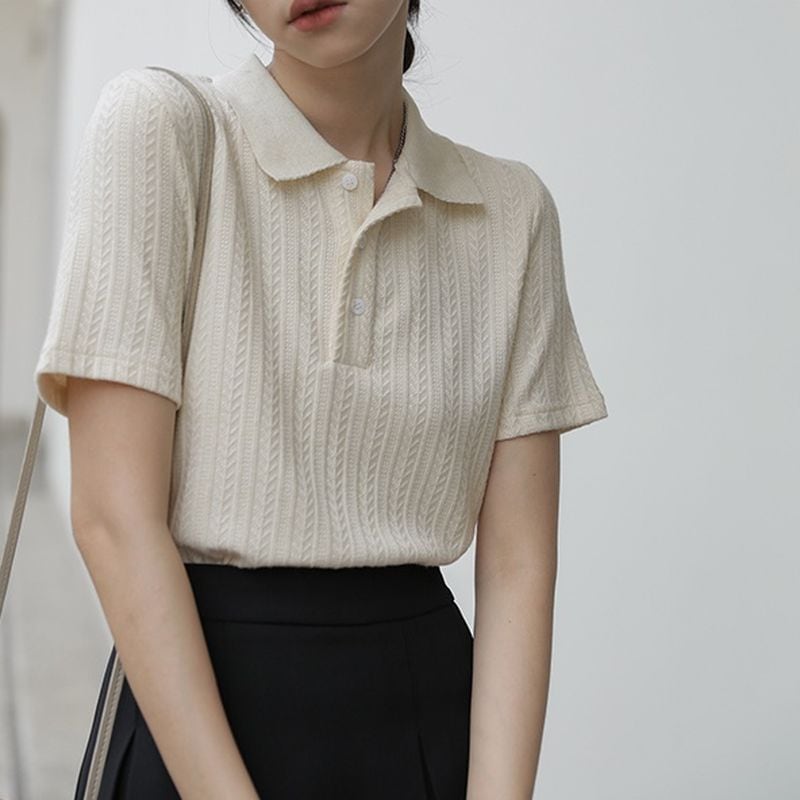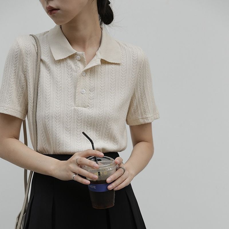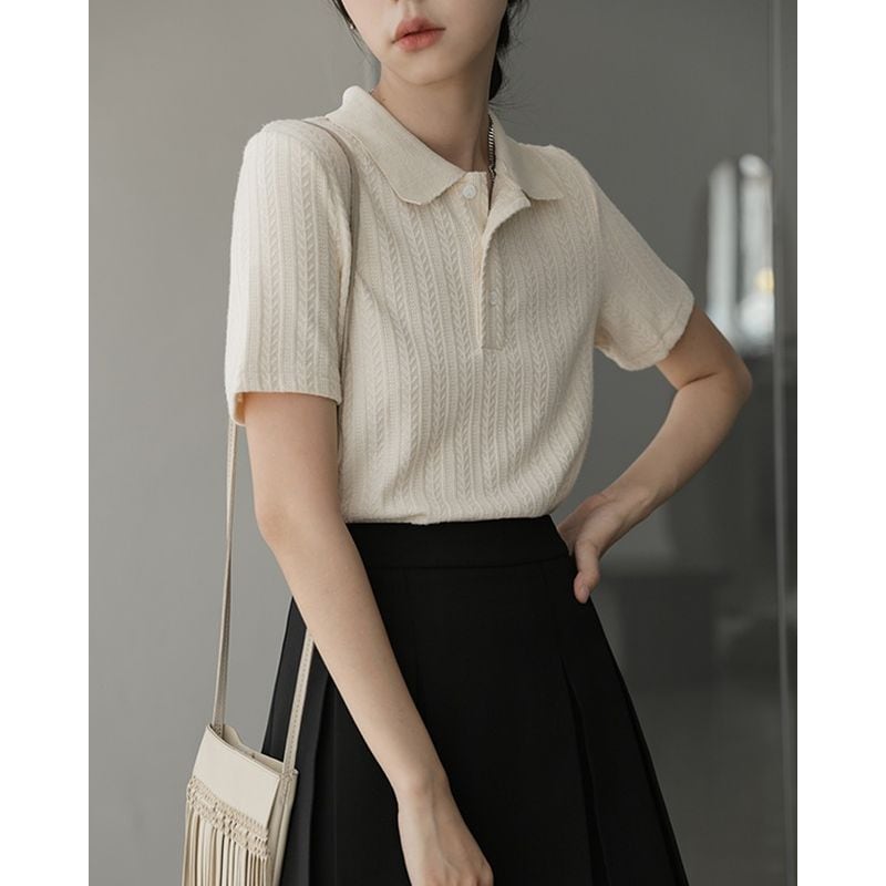 ニット編みのデザインが着こなしに華やかさを与えてくれるポロTシャツ。