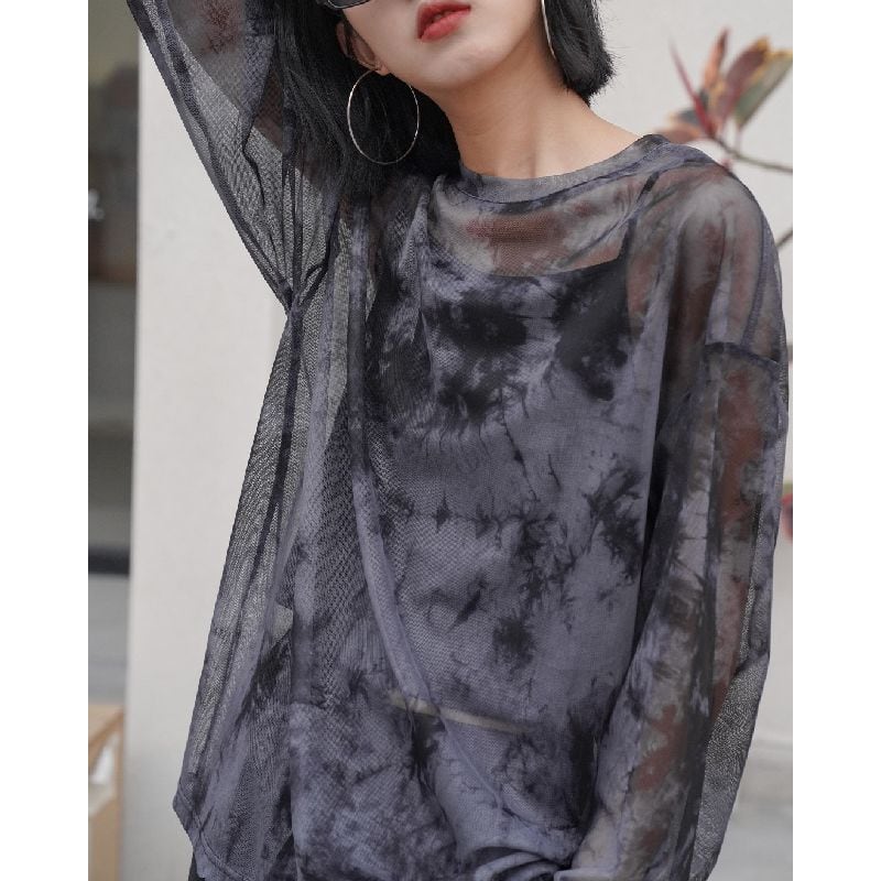 クールな大人カジュアルの印象を高めてくれる、タイダイデザインのシアープルオーバー。
