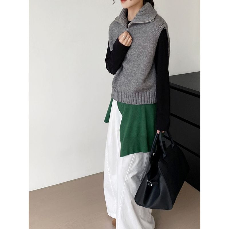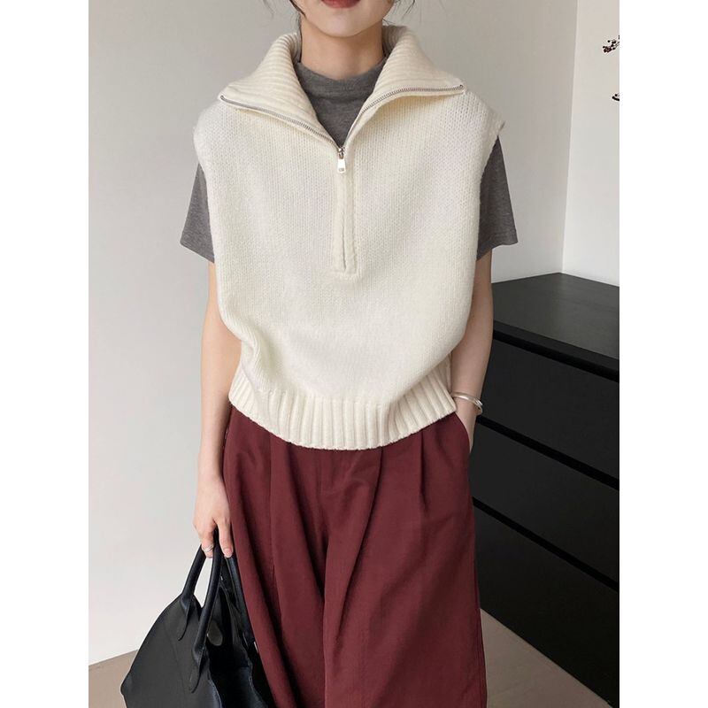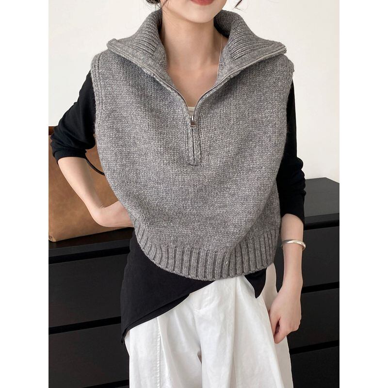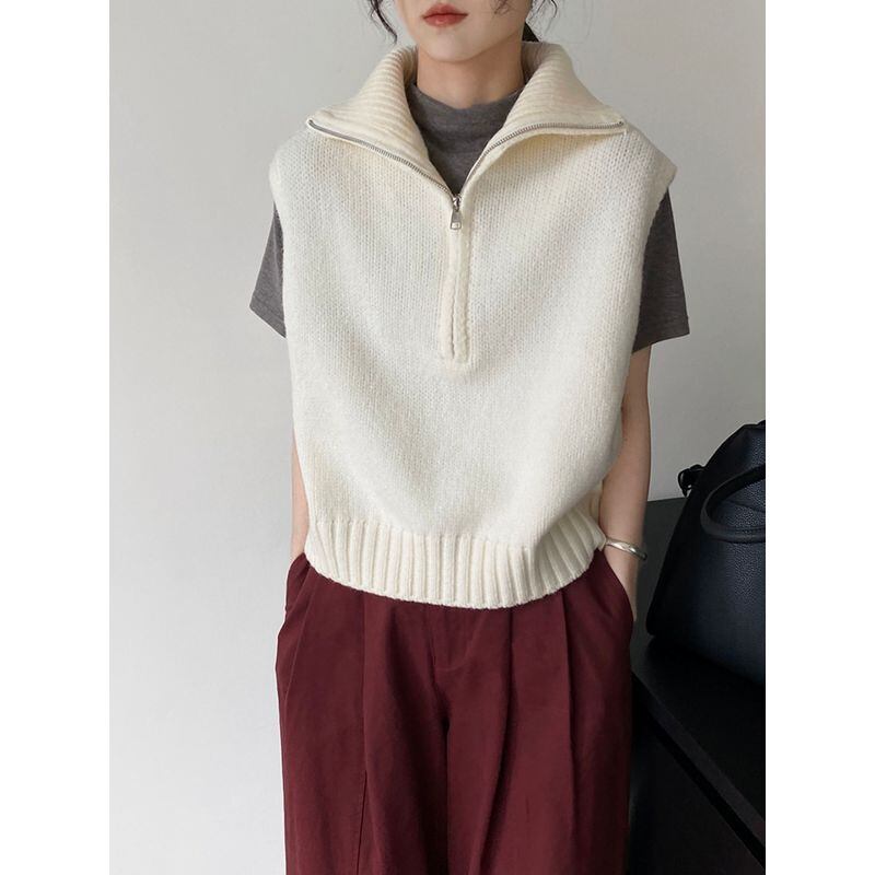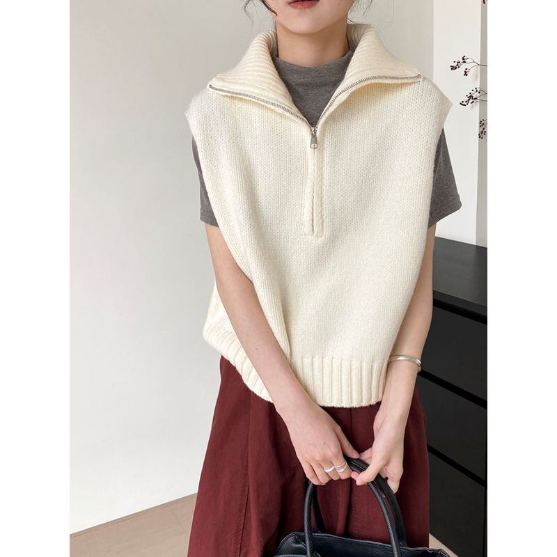 ネックデザインがハーフジップで、柔らかい雰囲気を作ってくれるニットベスト。