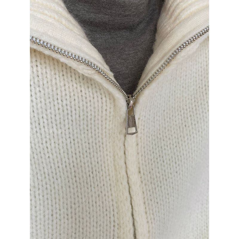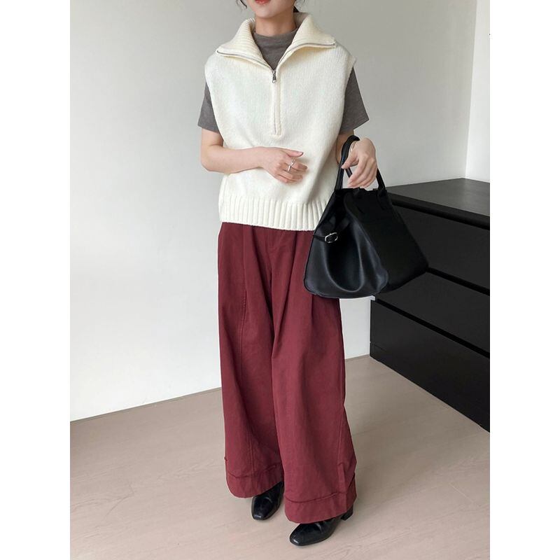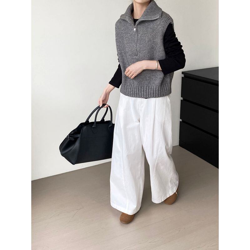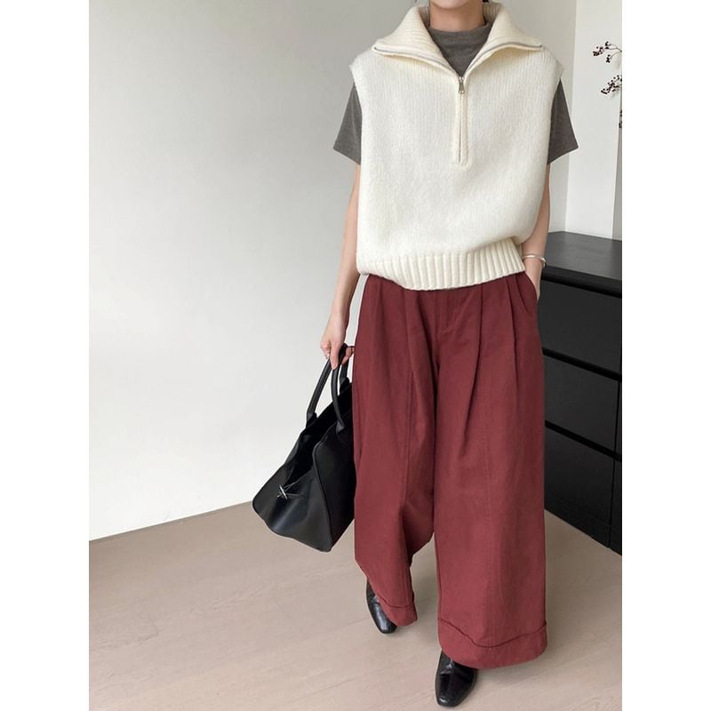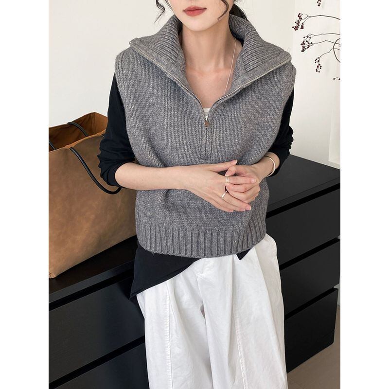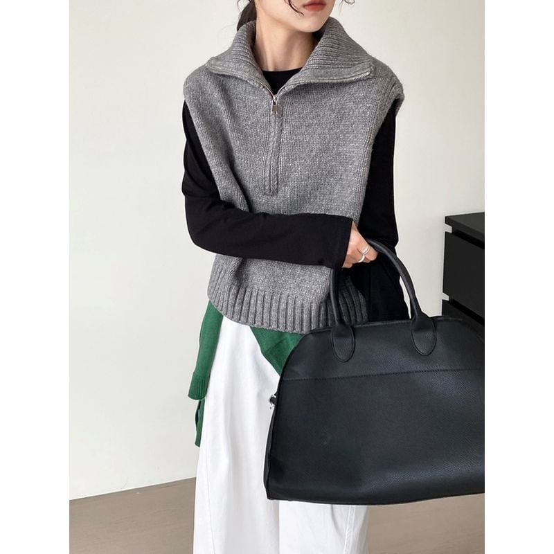 ネックデザインがハーフジップで、柔らかい雰囲気を作ってくれるニットベスト。